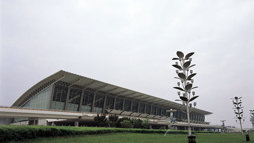 咸陽國際機(jī)場位于中國內(nèi)陸中心,是西北地區(qū)最大的空中交通樞紐。2009年開始擴(kuò)建,目前有2座候機(jī)樓,共10萬平方米,外墻面及外屋面都采用了寶鋼鍍鋁鋅彩涂鋼板。外屋面采用白灰PE鋼板,牌號為TDC51D+AZ,鋁鋅重量為150克/平方米。