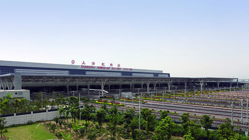 上海虹橋交通樞紐位于上海市偏西部,隨著2010年7月1日滬寧高鐵的通車,上海虹橋站部分啟用。此前的2010年3月,與虹橋站并排的虹橋機(jī)場(chǎng)2號(hào)航站樓怡開始使用,地鐵2號(hào)線西延段同期投入使用,2010年10月地鐵10號(hào)線也開始投入使用。作為京滬高鐵的終點(diǎn),上海虹橋站將集高速鐵路、城際鐵路、市域鐵路、航空、城市軌道交通和公交等多種交通方式,成為未來上海最大的綜合交通樞紐。虹橋交通樞紐西貨運(yùn)區(qū)外墻采用
