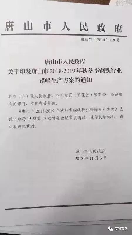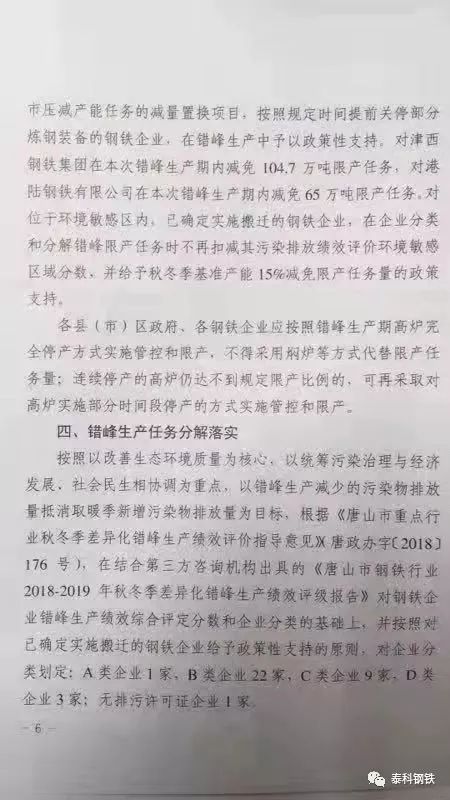 日前,唐山市2018-2019年秋冬季鋼鐵行業(yè)錯峰生產(chǎn)方案經(jīng)過市政府15屆17次常務(wù)會議審議通過,主要內(nèi)容為:分類執(zhí)行,對提前關(guān)停部分煉鋼設(shè)備的津西鋼鐵和港陸鋼鐵將分別減免104.7萬噸、65萬噸限產(chǎn)任務(wù)。