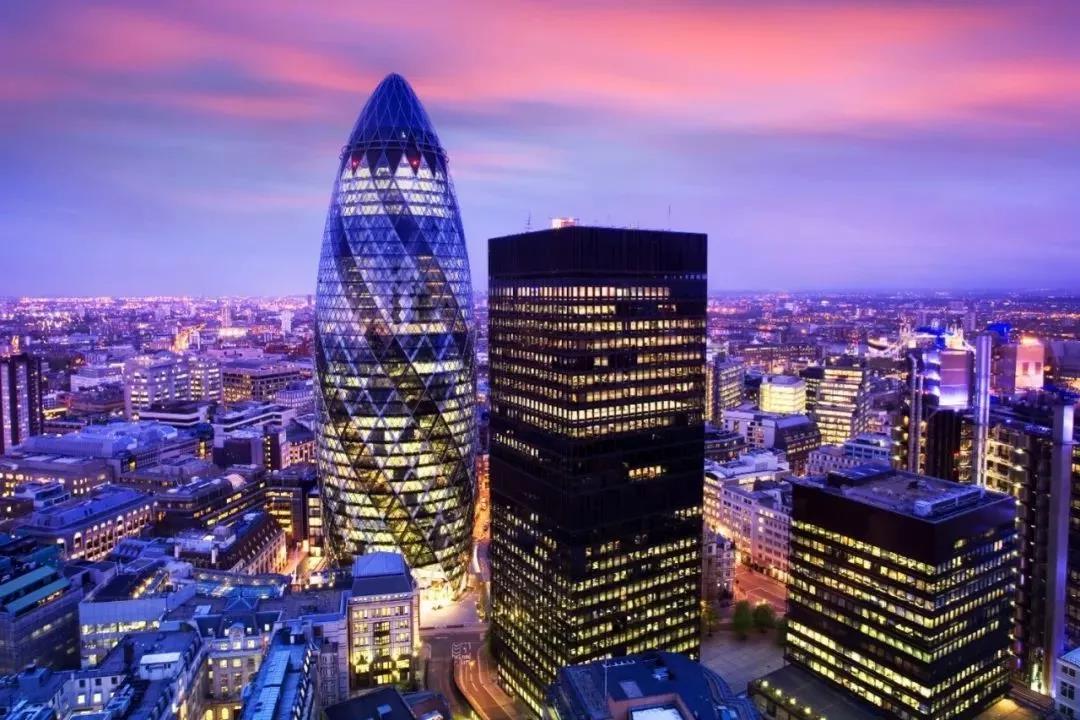 2003 年建成的瑞士再保險總部大廈位于英國倫敦,綽號“小黃瓜”。由諾曼·福斯特設計,是一個優美而高效的杰作。