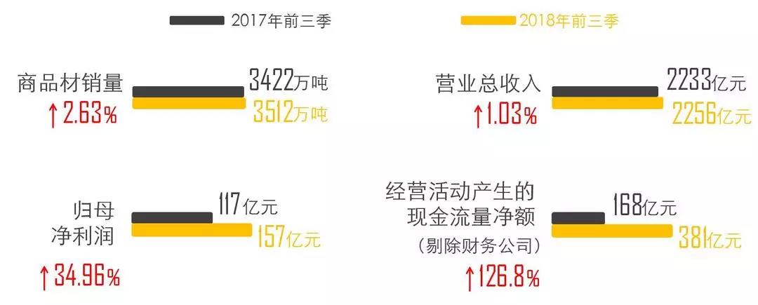 今年前三季度,寶鋼股份累計完成商品坯材銷量3511.6萬噸;累計成本削減38.8億元,超額完成年度目標;累計實現經營活動凈現金流367.5億元,同比增長179.9%;三季度末,資產負債率降為47.6%。