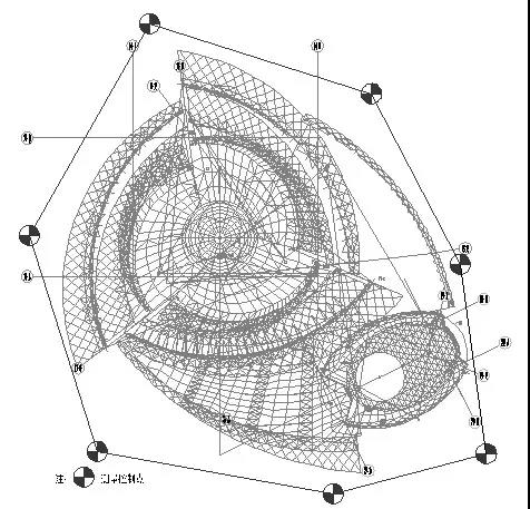 圍繞整個屋蓋部分設(shè)置的4個主控制點組成的多邊形控制網(wǎng) |