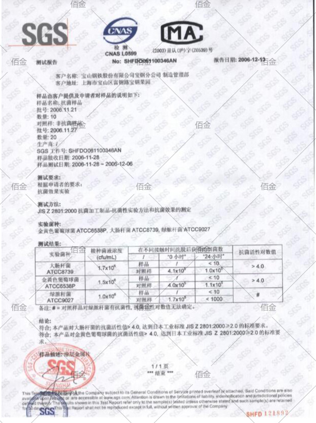 抗菌彩板涂層中由于使用了特殊搪瓷系列抗菌劑,具有無毒性及半永久性抗菌效果和遠紅外線輻射效果,它特殊的面漆設計可以殺死大腸桿菌、金黃色葡萄球菌和綠膿桿菌等常見細菌,