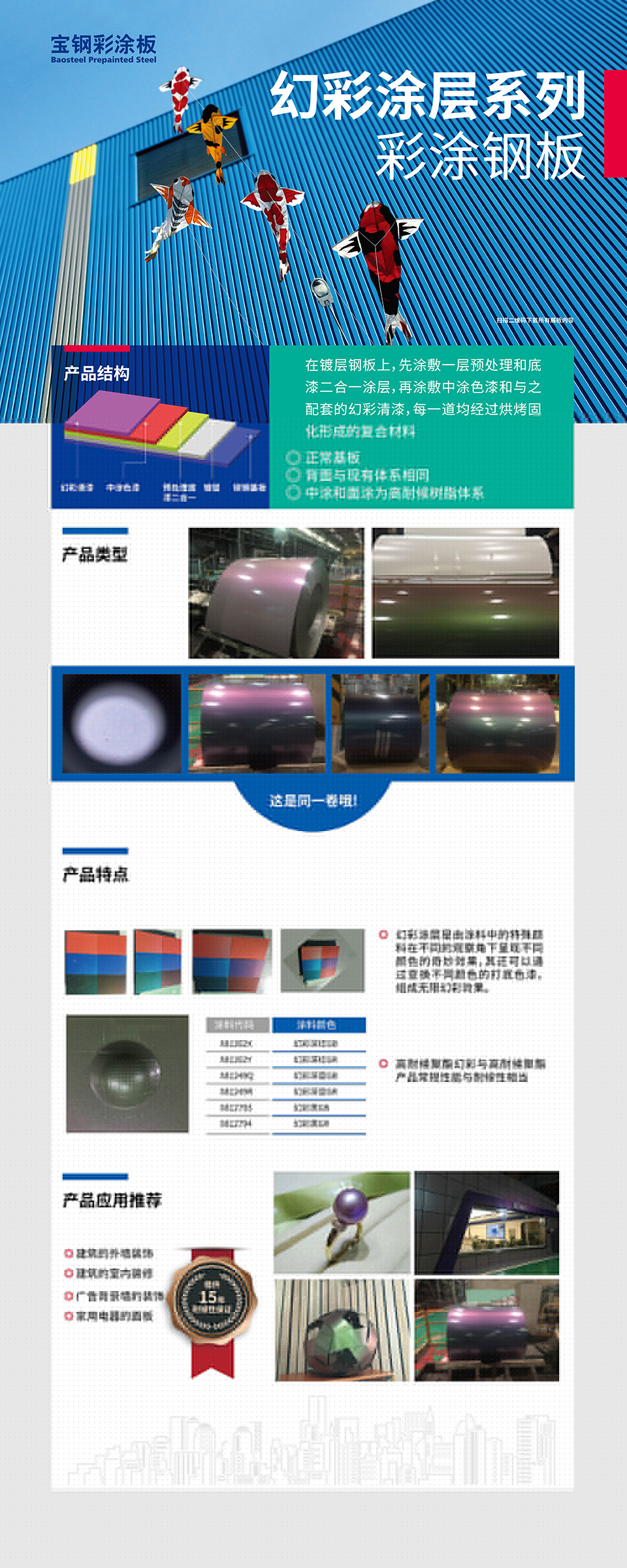 注:本網(wǎng)站數(shù)據(jù)部分來源寶鋼彩涂板企業(yè)標(biāo)準(zhǔn)BQB/440 -2014 ,寶鋼彩涂板產(chǎn)品手冊,及工程案例。